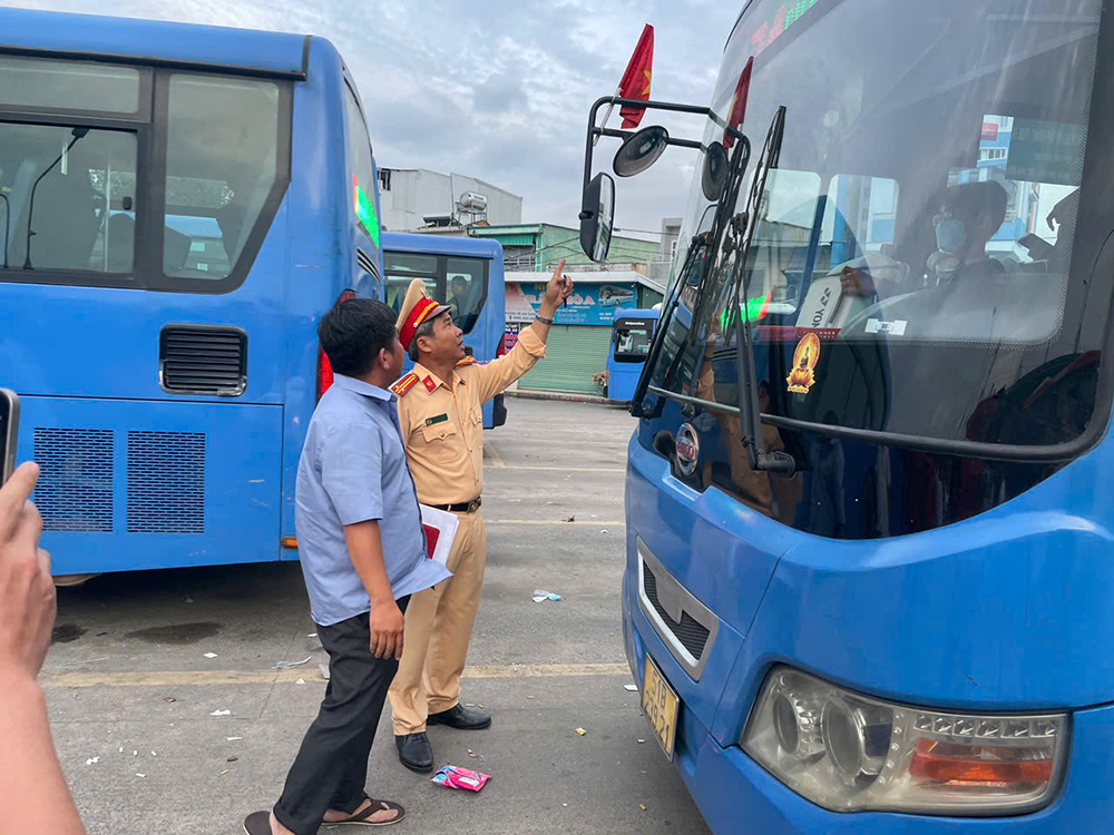Phòng CSGT Công an TPHCM cho biết, Đội CSGT An Sương đang đẩy mạnh kiểm tra và tuyên truyền, vận động các chủ phương tiện vận tải hành khách lắp đặt thêm gương cầu lồi, camera để loại bỏ 'điểm mù', nâng cao an toàn giao thông.