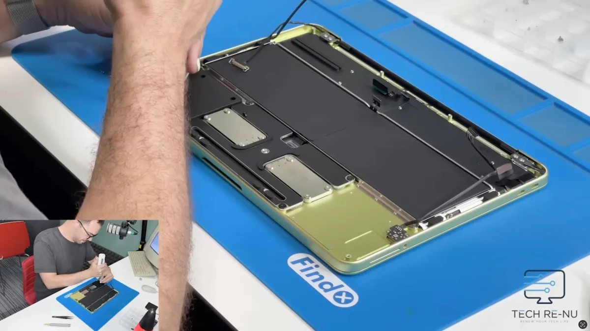 Đó là lý do đoạn video tháo lắp MacBook Neo của kênh sửa chữa Tech Re-Nu (Australia) gây bất ngờ khi không hề thấy bóng dáng của keo dán.