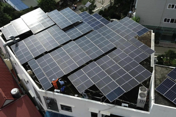 Hệ thống điện mặt trời được hộ gia đình lắp đặt trên mái nhà. Ảnh: Phương Anh