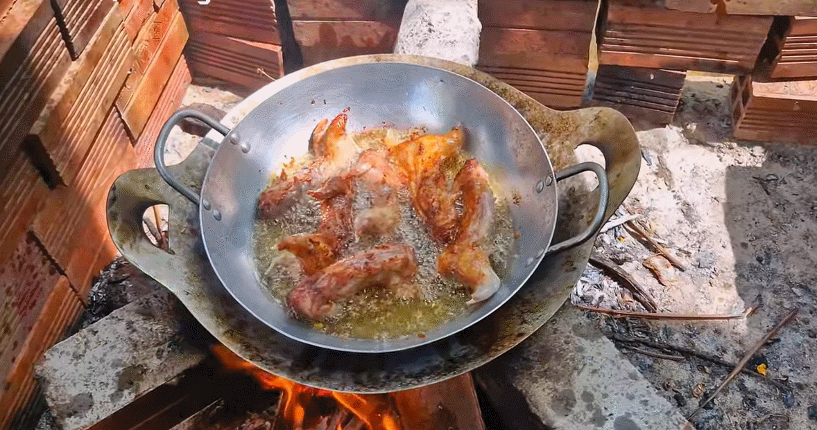 Chuột dừa ngon nhất khi nướng bằng bếp than, giữ mức lửa vừa và lật đều tay để đảm bảo thịt chín đều, còn phần da giòn, có màu vàng ruộm bắt mắt.