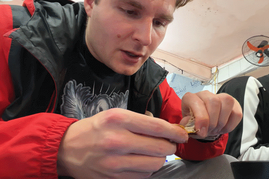 Tại quán, họ gọi một suất chim câu quay gồm 2 con, giá 150.000 đồng/con. Tuy nhiên, chỉ có Max và một người bạn nữa thưởng thức. Hai người còn lại thì e ngại, chưa đủ can đảm để nếm thử món ăn được chế biến từ chim câu.