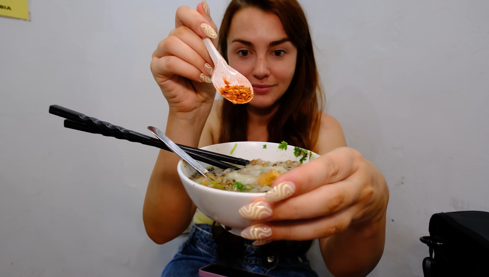 Tại quán, Karissa gọi 1 suất bánh đúc nóng. Khi món ăn được bưng lên, vị khách Tây tỏ ra ngạc nhiên, không ngừng cảm thán.
