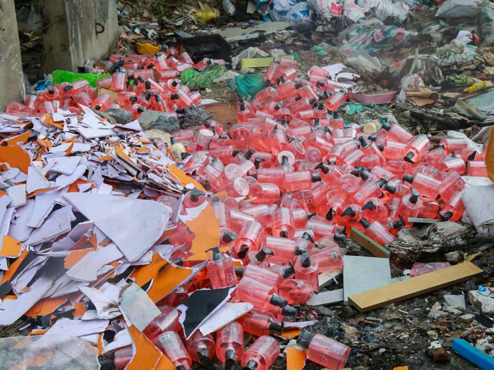 Nhiều sản phẩm bị vứt bỏ la liệt tại bãi rác có chữ nước ngoài, không có nhãn phụ tiếng Việt.