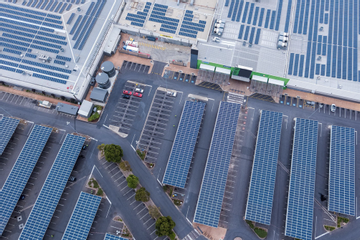 Bãi đỗ xe có mái che là tấm năng lượng mặt trời. Ảnh: SolarEgde