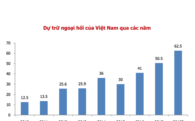 Dự trữ ngoại hối được củng cố và duy trì ở mức khá (63,5 tỉ USD), khi NHNN đã kịp thời mua vào 11 tỉ USD trong năm 2018 tạo điều kiện giữ ổn định tỉ giá. Trong năm 2018, NHNN đã lường trước được biến động tăng giá của USD do đó hoàn toàn chủ động trong việc điều hành tỉ giá linh hoạt trong biên độ an toàn.