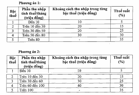 Theo cơ quan soạn thảo, qua quá trình lấy ý kiến, đa số đều đề nghị thực hiện theo phương án 2. Cũng có ý kiến đề xuất giãn các mức thu nhập trong từng bậc thuế cao hơn nữa, hạ thuế suất từng bậc, thậm chí giảm trần từ 35% xuống 30% hoặc 25%...