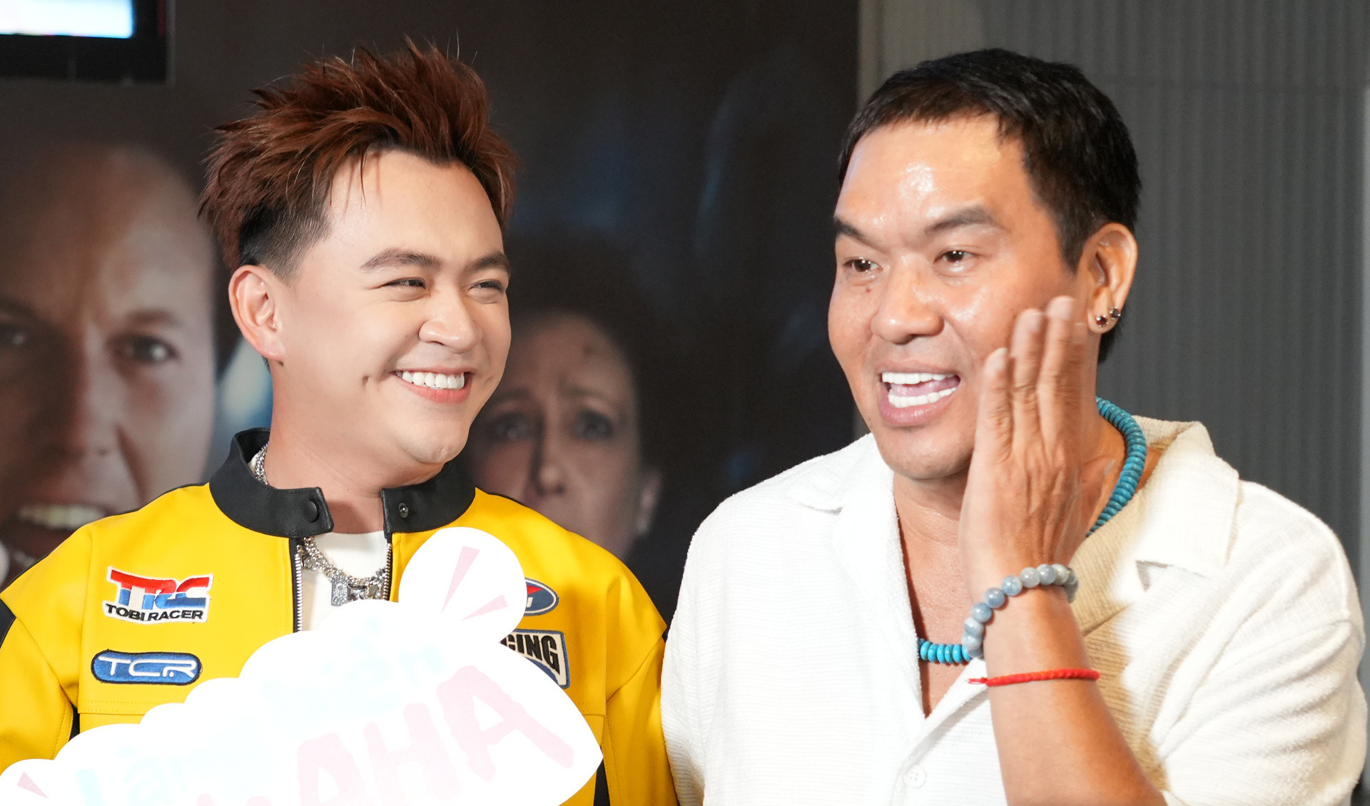Hoàng Mập bên con nuôi - diễn viên trẻ Lại Nhật Khoa. Ảnh: BTC