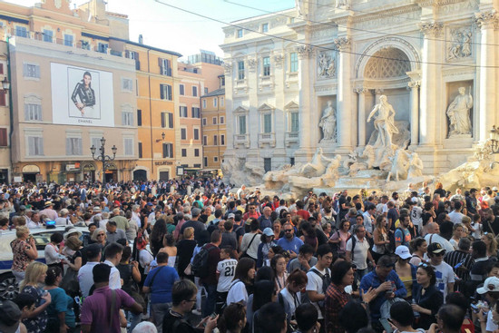 Du khách tập trung đông đúc tại đài phun nước Trevi, Rome. Ảnh: Lý Dật Thụ