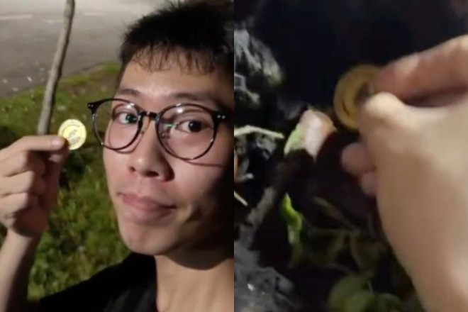 Đồng xu vàng Jun Liang tìm thấy ở dưới gốc cây dọc theo đường Tagore là phiên bản đặc biệt SG60.