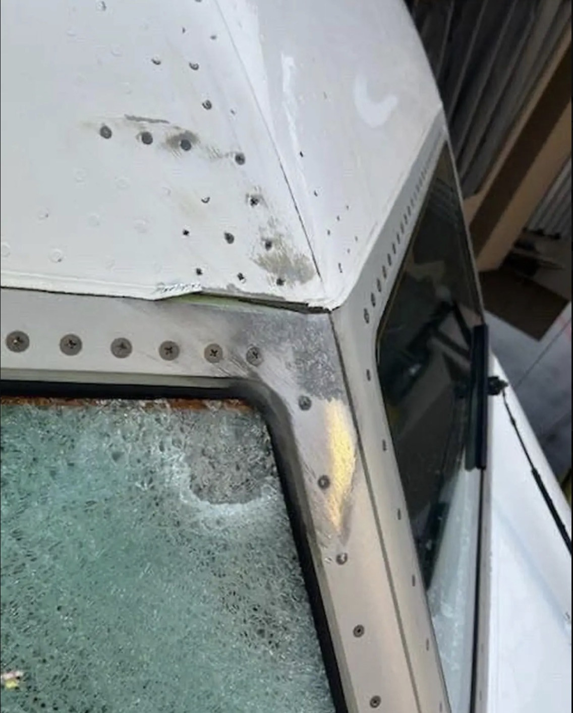 Máy bay bị vỡ kính chắn gió sau khi va chạm với vật thể bí ẩn. Ảnh: X