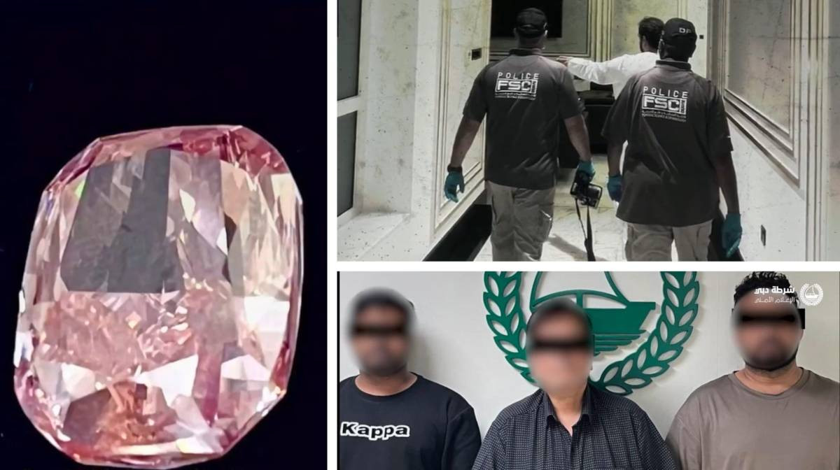 UAE - Chỉ 8 tiếng sau khi dàn cảnh đánh cắp viên kim cương hồng trị giá 25 triệu USD (khoảng 650 tỷ đồng), 3 nghi phạm đã bị cảnh sát Dubai bắt giữ.