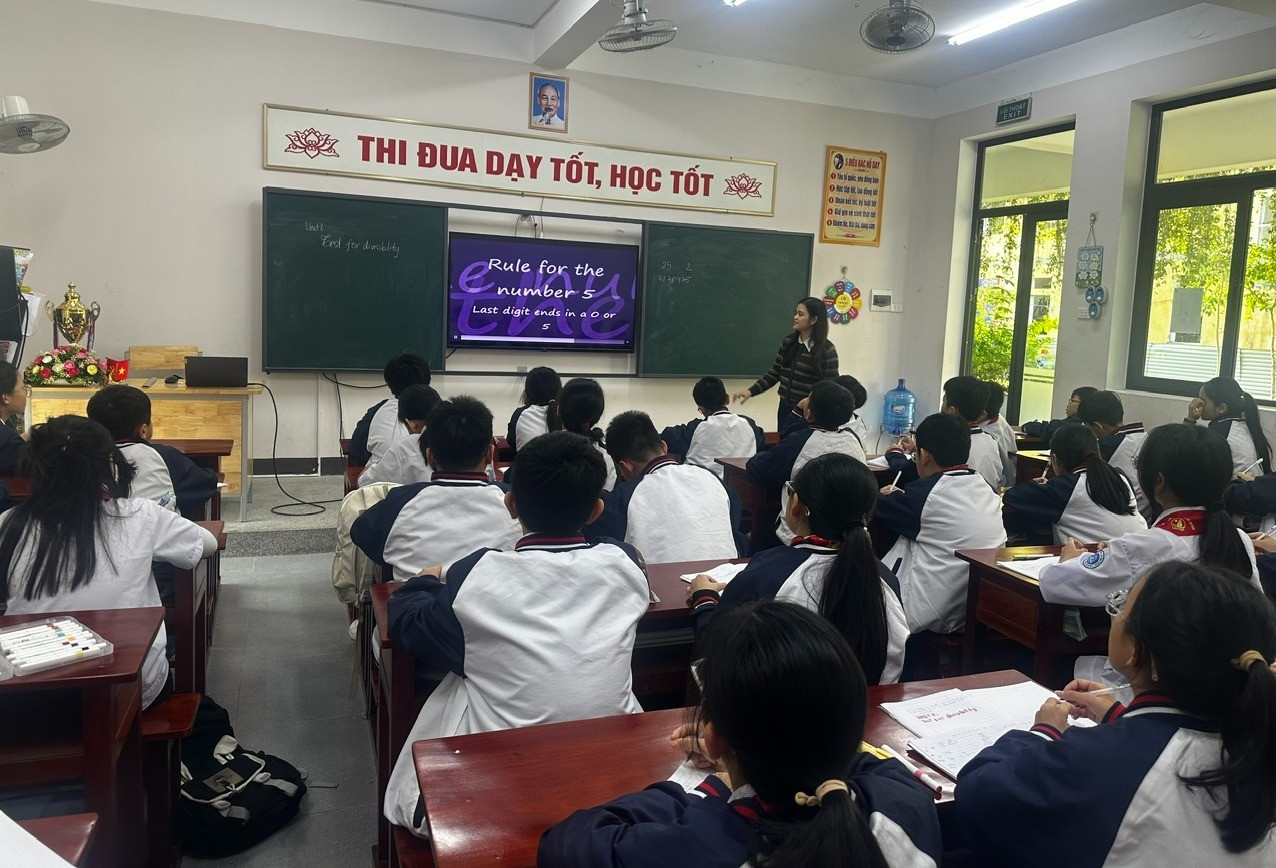 Thầy Trần Thanh Kiên, Hiệu trưởng Trường THCS Lê Văn Thiêm cho biết, nhà trường bắt đầu triển khai dạy môn Toán bằng tiếng Anh từ năm học 2021-2022 và đến nay đã duy trì 4 năm.