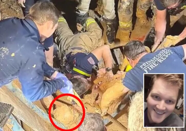 Mắc kẹt dưới bùn đến tận cổ, người đàn ông sống sót ngoạn mục