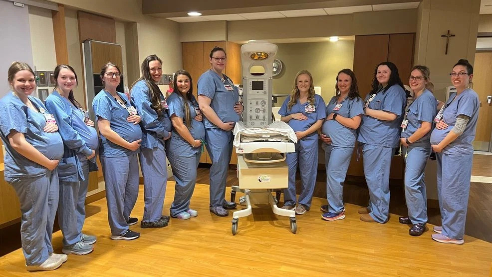 MỸ - Bệnh viện HSHS St. Vincent ở Green Bay, Wisconsin, bất ngờ gây chú ý khi thông báo có tới 14 nữ y tá của bệnh viện đang mang thai và dự sinh trong cùng 1 tháng.