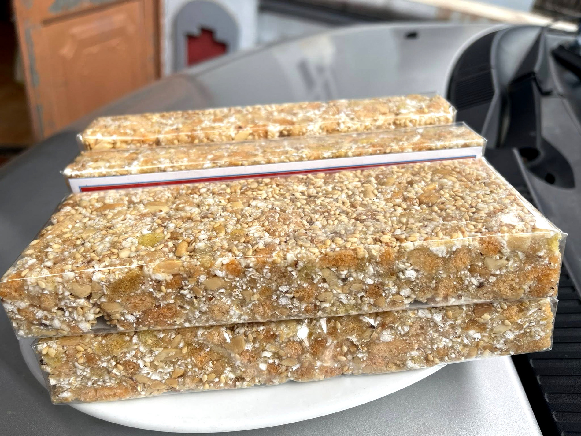 Tất cả sẽ được trộn cùng nước đường mạch nha (hoặc mật mía) sánh quyện rồi đổ khuôn, chờ khô thì cắt thành các miếng nhỏ và đóng gói.